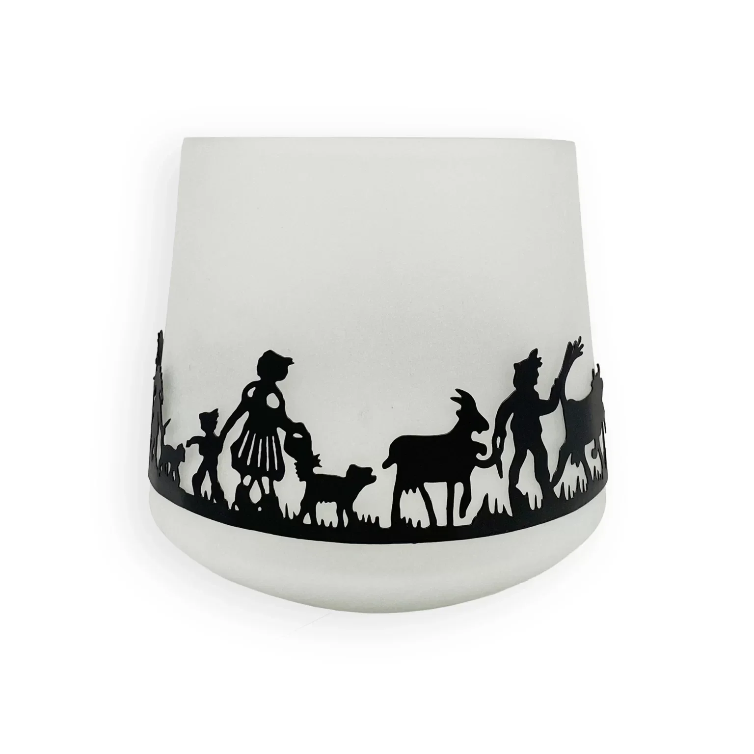 Für die Kollektion der Windlichter haben wir uns in einer klaren Vollmondnacht vom Leuchten des Gletschers inspirieren lassen. Die Windlichter sind aus satiniertem Glas werden von einem schwarz-matten Metallring mit einem Scherenschnitt von Esther Gerber umzogen. Die Kollektion eignet sich als Lichtspender mit einer Kerze oder als Vase für zuhause.